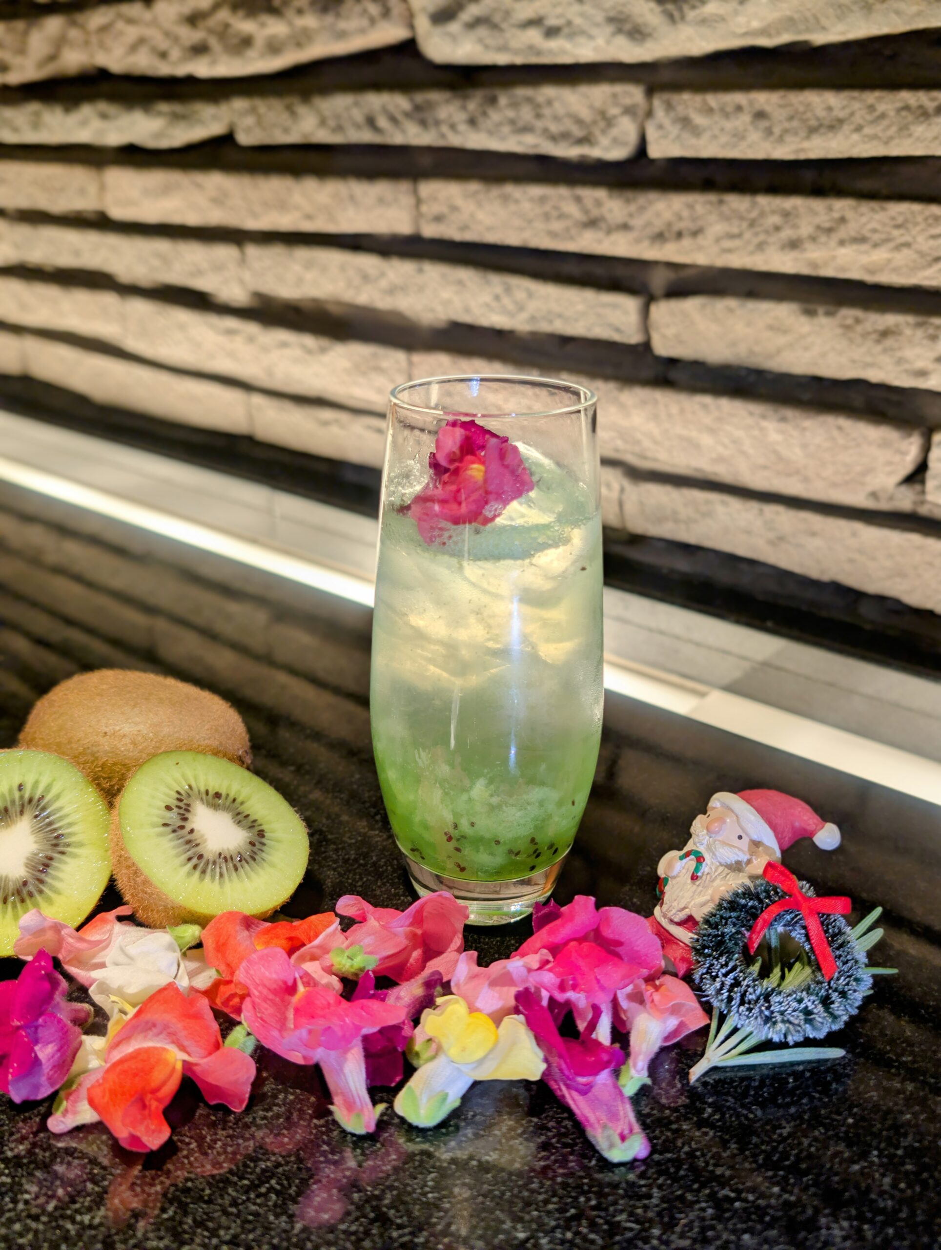 クリスマスカラーのグリーンを基調とした炭酸仕立てのオリジナルドリンクです。キウイ果肉を使ったピューレをベースに、さわやかなりんご酢を合わせました。キウイの味わいをすっきりとお楽しみいただけます。