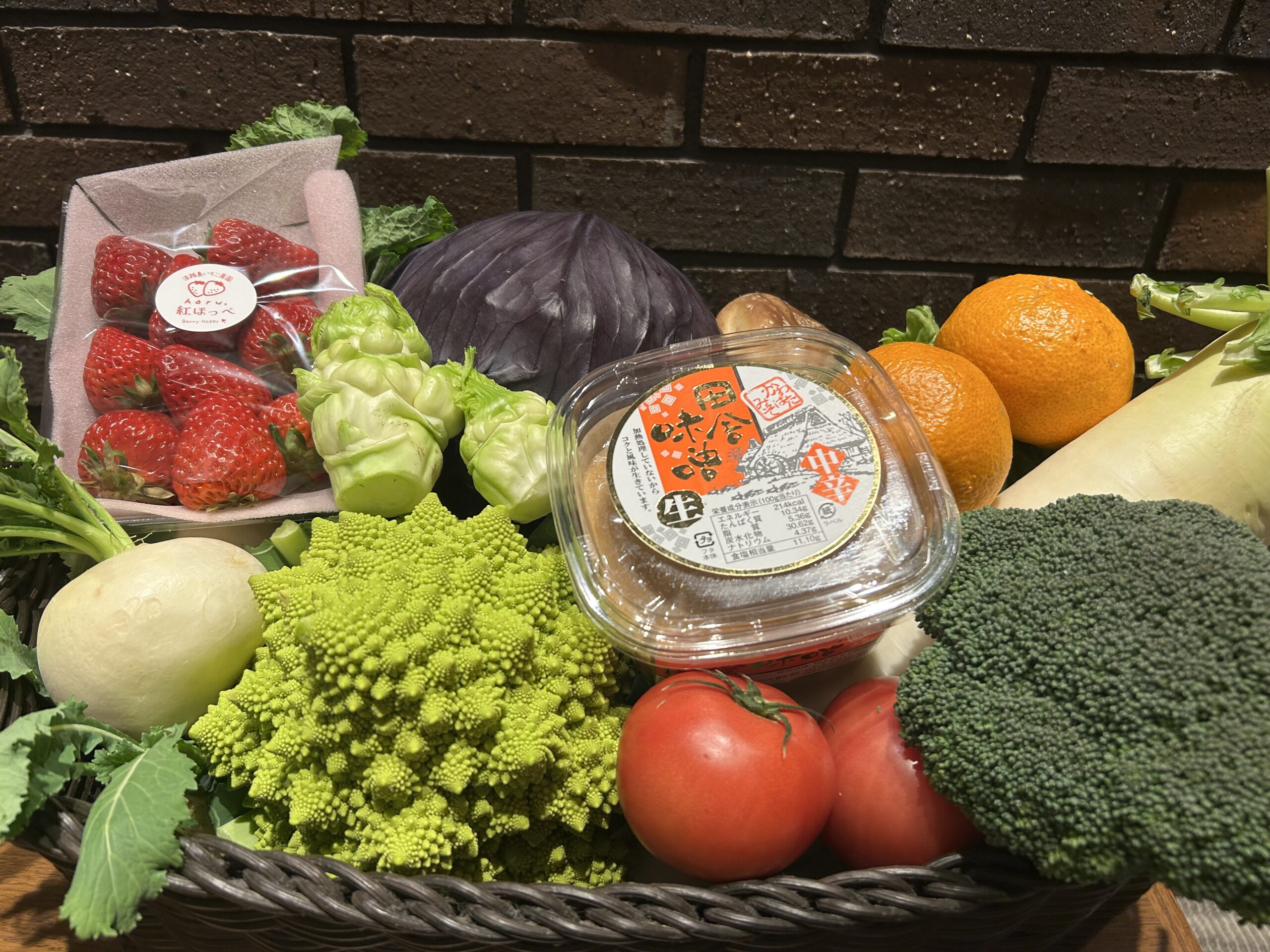 各地域で収穫された淡路島たまねぎ、ブロッコリー、菜の花、レタス、ロマネスコ等、「兵庫の野菜」をたっぷりとお楽しみいただけます。